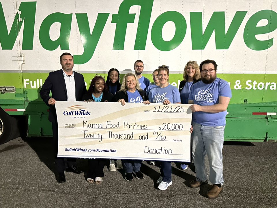 Gulf Winds Credit Union recently donated $20,000 to Manna and presented the check at their annual Fill the Mayflower event, one of the community’s most impactful annual food-drive events. This year’s donation helps strengthen Manna’s ability to deliver consistent, sustainable hunger relief, supporting programs that ensure children, families, and seniors have dependable access to nutritious food year-round.