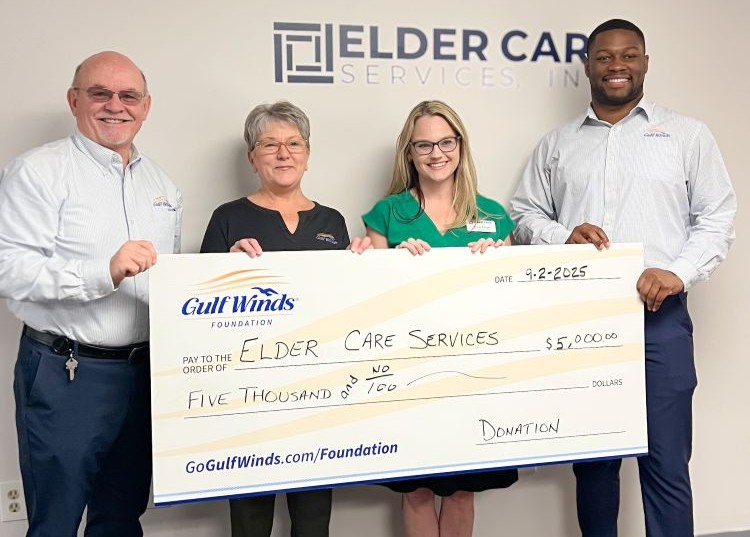 Gulf Winds contributed $5,000 to Elder Care Services to ensure that seniors in the Tallahassee community continue to receive the best support available to them. We’re honored to help the seniors in our community receive resources to help them thrive in their health and well-being from the comfort of their homes.